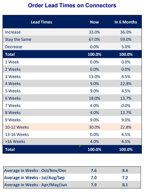 Lead times are at 7.6 weeks now and are forecast to be 8.4 in six months.
