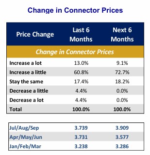 Industry personnel were asked, “In your opinion, what happened to connector prices in the past six months,